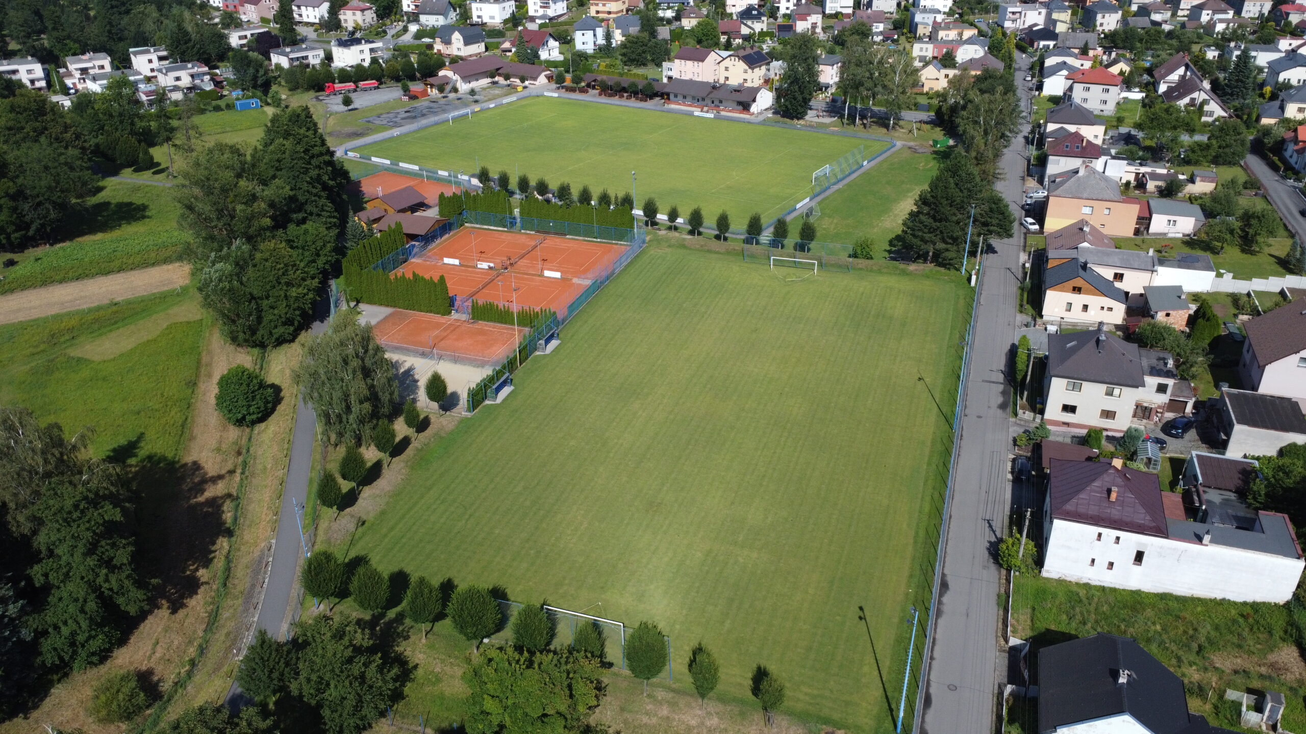 Rovněž oba tenisové kurty mají umělé osvětlení a součástí areálu je i dřevěnice pro zázemí tenistů. Podobné podmínky mají také nohejbalisté, kteří využívají zázemí dřevěnice a přilehlého WC. Antukový nohejbalová kurt je také vybaven umělým osvětlením.